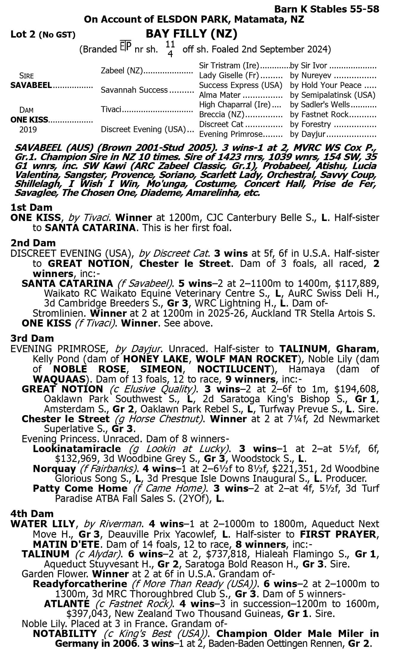 Lot 2 Savabeel - One Kiss filly
