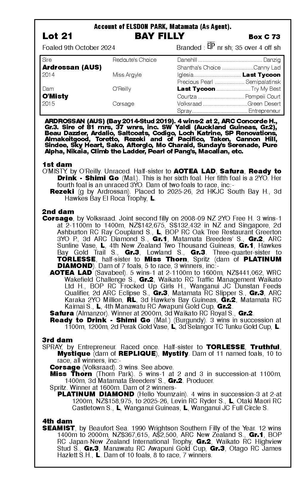 Lot 21 Ardrossan - O'Misty Bay Filly