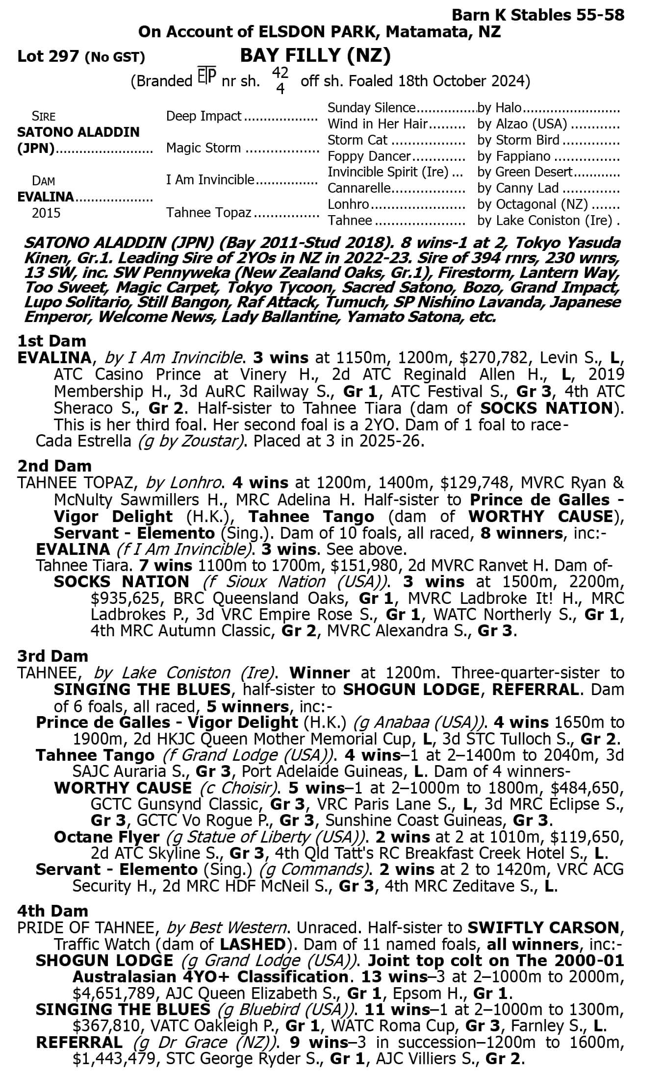 Lot 297 Satono Aladdin - Evalina filly