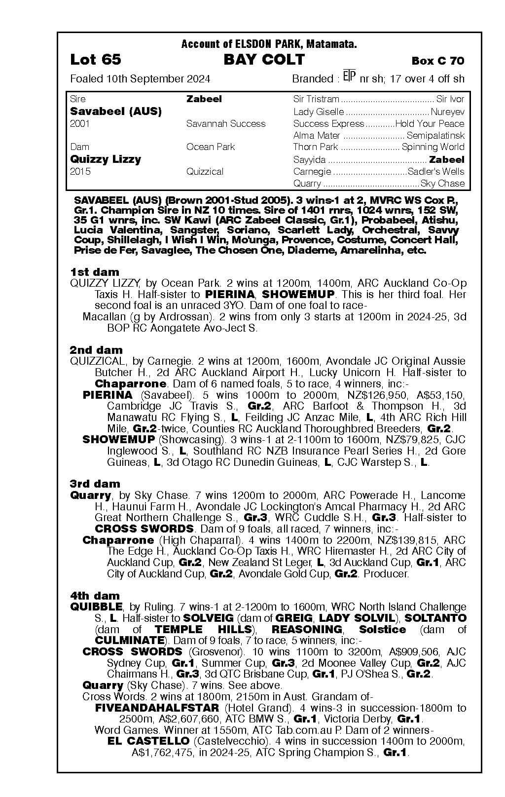 Lot 65 Savabeel - Quizzy Lizzy Bay Colt