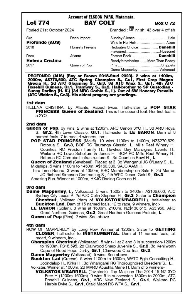 Lot 774 Profondo ‐ Helena Cristina Bay Colt