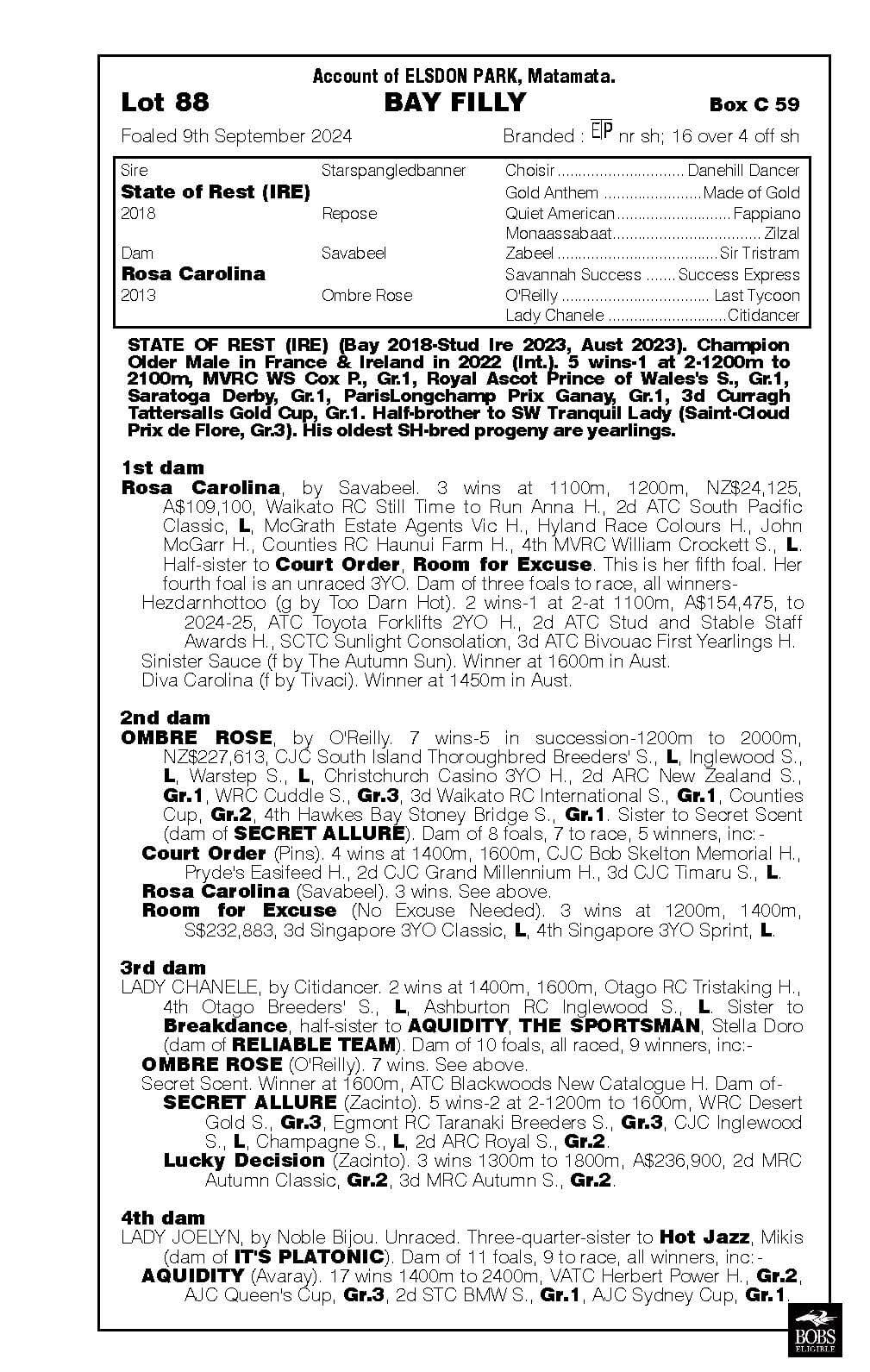 Lot 88 State of Rest - Rosa Carolina Bay Filly